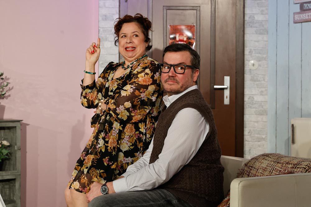 Nun beginnt der pointenreiche Schlagabtausch zweier Menschen, die unterschiedlicher kaum sein könnten. Die vorwitzige Nachbarin von unten, Frau Otto (Franziska Traub), verwirrt dabei zusätzlich mit viel Neugier und jeder Menge Tratsch.